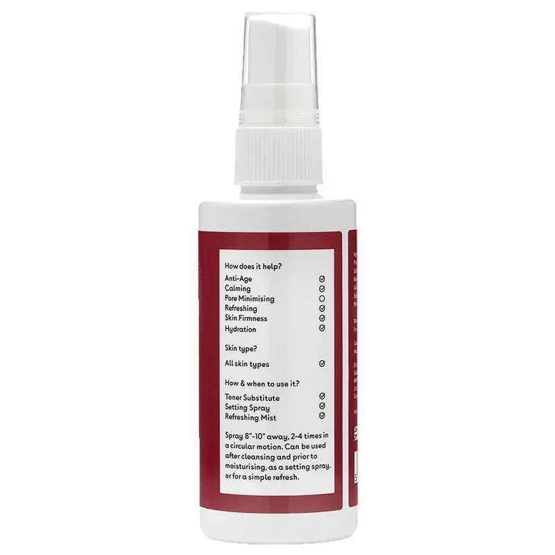 الوصف: رذاذ إنعاش للبشرة في الصباح والظهيرة والمساء فائق الترطيب مكون من حمض الهيالورونيك مع البيتين والصبار والجلسرين لتجديد شباب البشرة وترطيبها .
